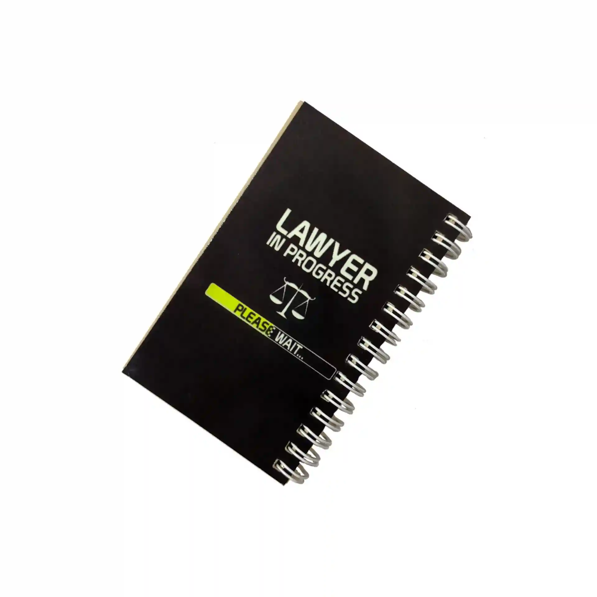 جلد این مدل از مقوای ضخیم با روکش سلفون محافظ تهیه شده که مقاومت بالایی در برابر آسیبهای روزمره، لکه و رطوبت دارد. طرح روی جلد این دفترچه متناسب با دانشجویان حقوق و کارآموزان وکالت طراحی شده و جلوهای رسمی و حرفهای به آن بخشیده است.