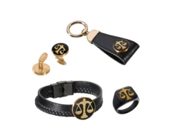 سرکلیدی چرم طرح ترازوی عدالت با طلای 24 عیار
