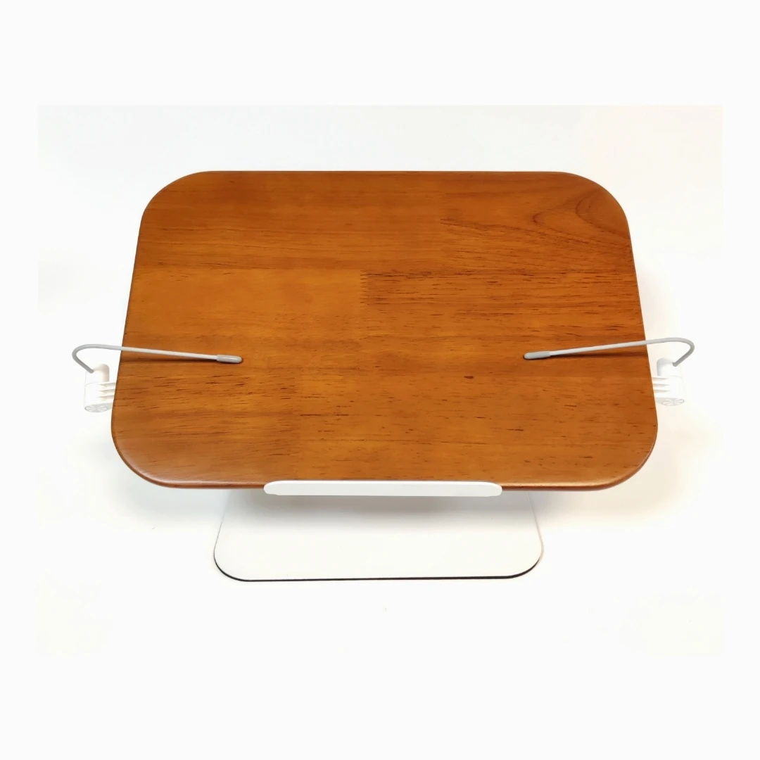 برای نگه داشتن صفحات کتاب دو شاخک فلزی مخصوص در دو طرف طراحی شده که به صورت افقی و عمودی قابل دوران است