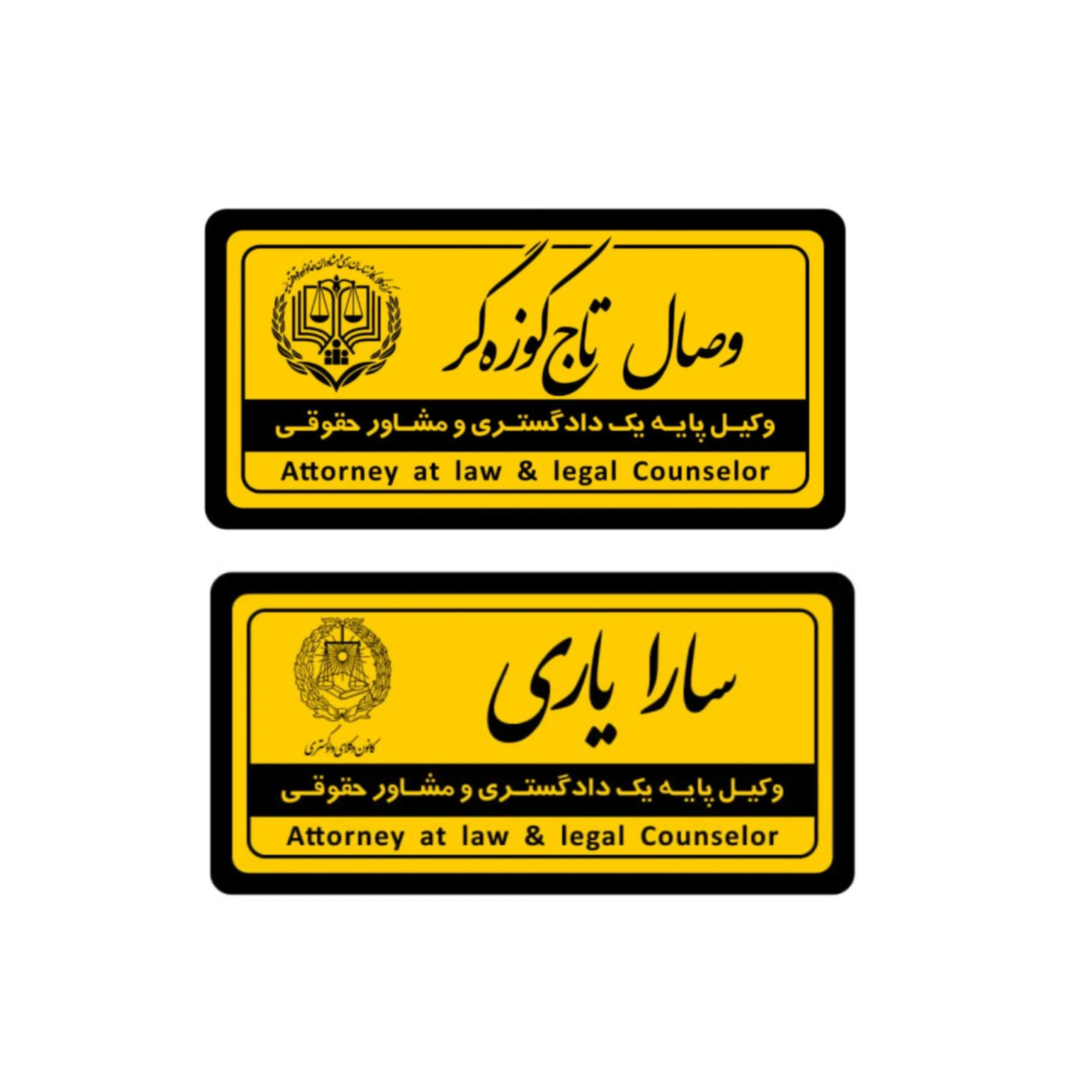 برای ثبت سفارش فقط کافی ست در کادرهای مشخص شده ” نام وکیل – لگوی نهاد متبوع – متن کادر مشکی و متن کادر طلایی ” را ثبت نمایید