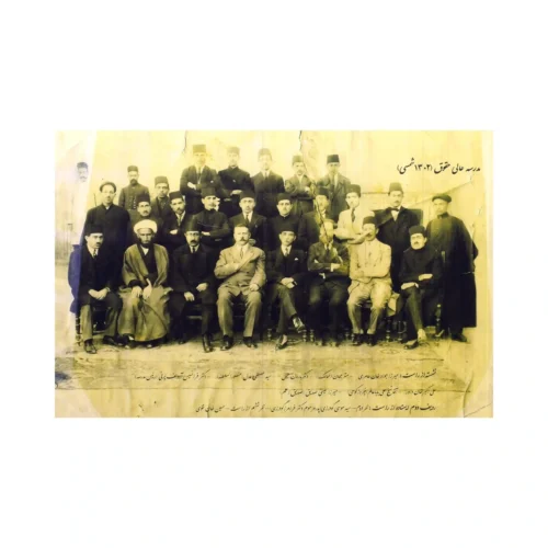 پوستر کاغذی اولین تصویر از مدرسه عالی حقوق در ایران